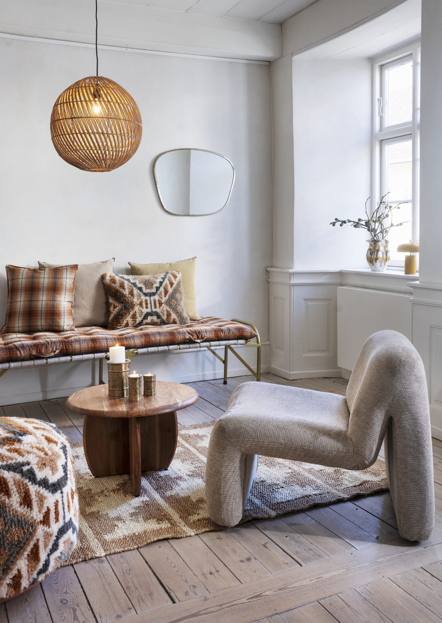 Pufa doskonale wpisuje się jako element wnętrz w stylu skandynawskim i boho. Świetnie komponuje się również we wnętrzach nowoczesnych - ożywia je i ciekawie przełamuje styl.