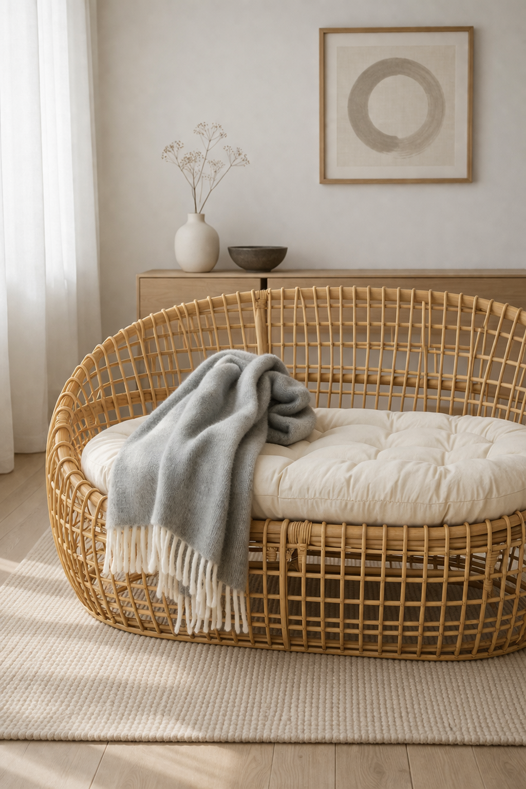 W zestawie oferujemy stylowy, skandynawski pled wykonany z mieszanki akrylu i wełny w delikatnym, szarym odcieniu. Miękki, przyjemny w dotyku i wykończony dekoracyjnymi frędzlami, nie tylko podnosi komfort użytkowania, ale także stanowi subtelny akcent dekoracyjny, który ociepla aranżację i dodaje jej przytulnego charakteru.